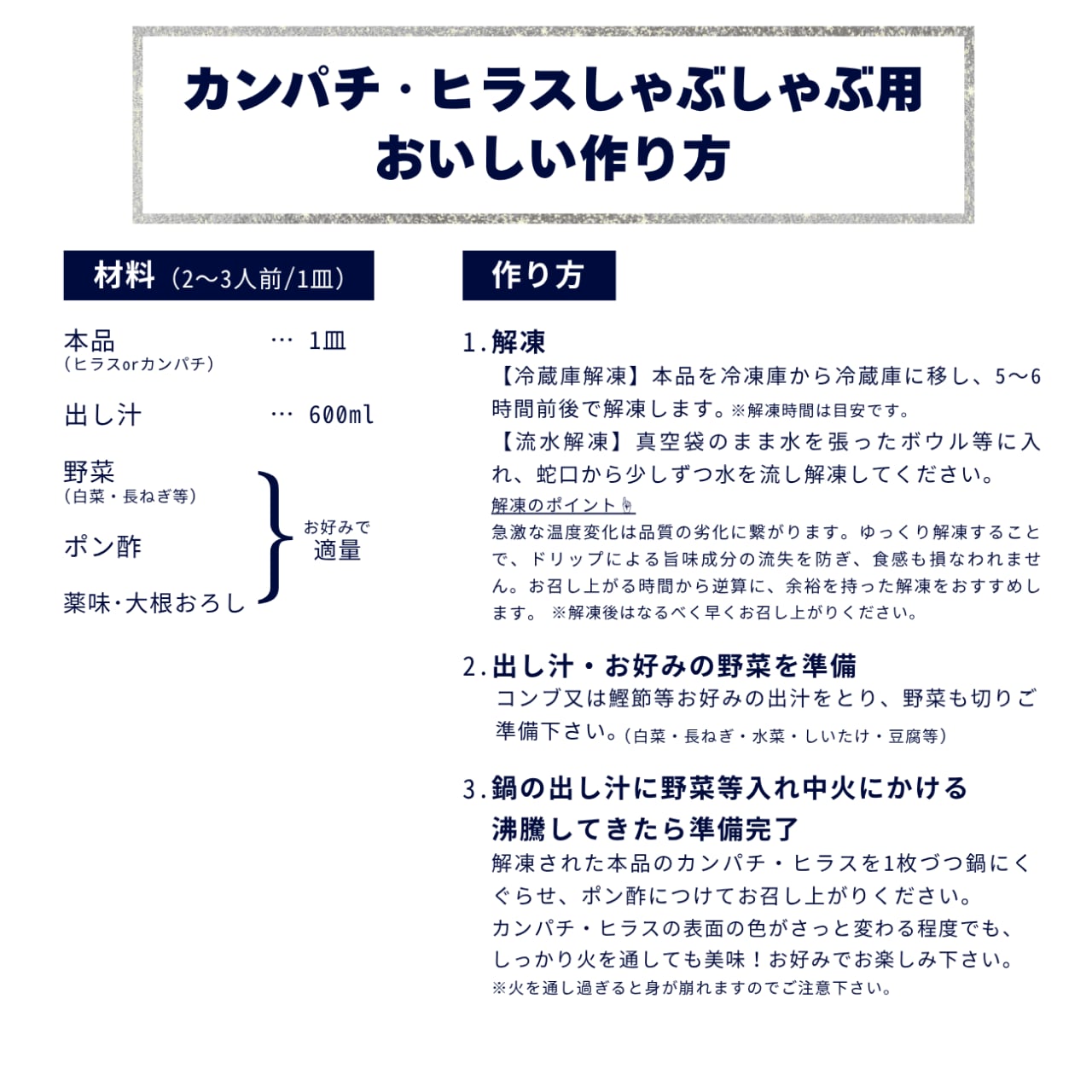 【内容】 カンパチしゃぶしゃぶ用(2~3人前×2皿)